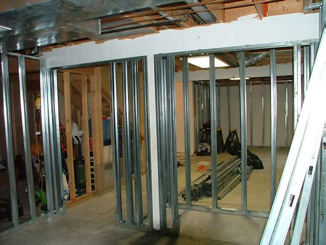 framing around the perimeter, and putting in the walls that separate the
