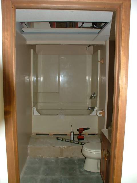 repairs had to be done to the drywall above the bath tub because of some