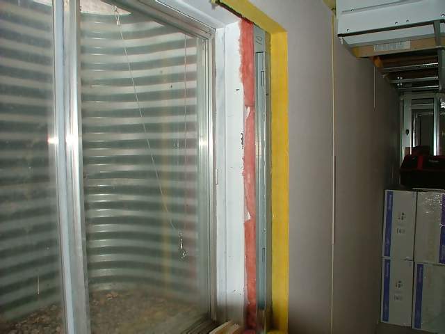 The insulation is installed and the bedroom door is mounted. In