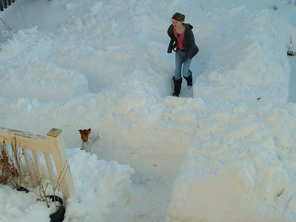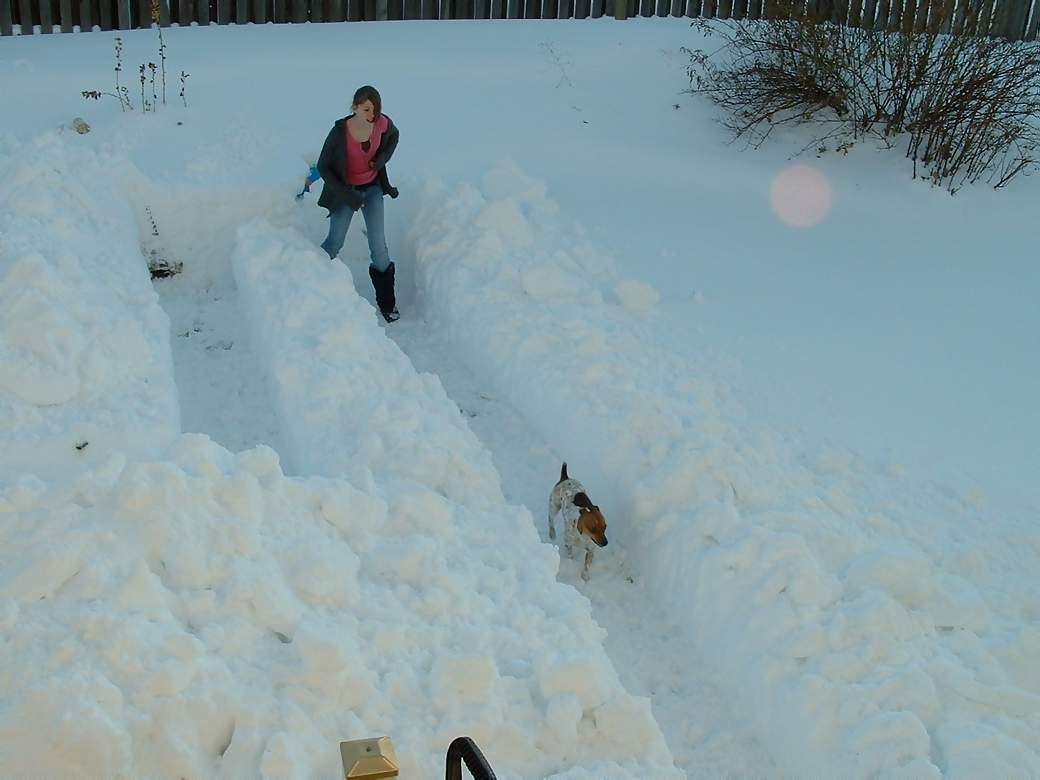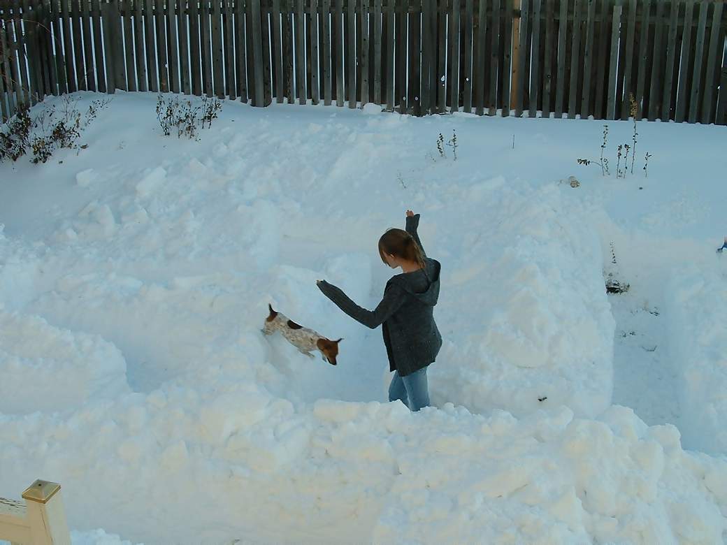 large drifts in our back yard to dig a snow maze for Milo to run